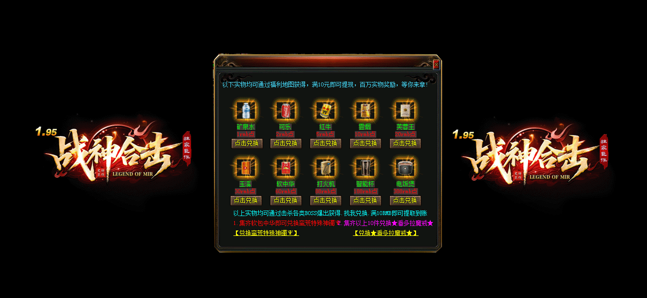 游戏介绍:十年品牌.专注游戏品质.创新玩法.给你不一样的游戏体验 1.95战神合击.独家设计制造
